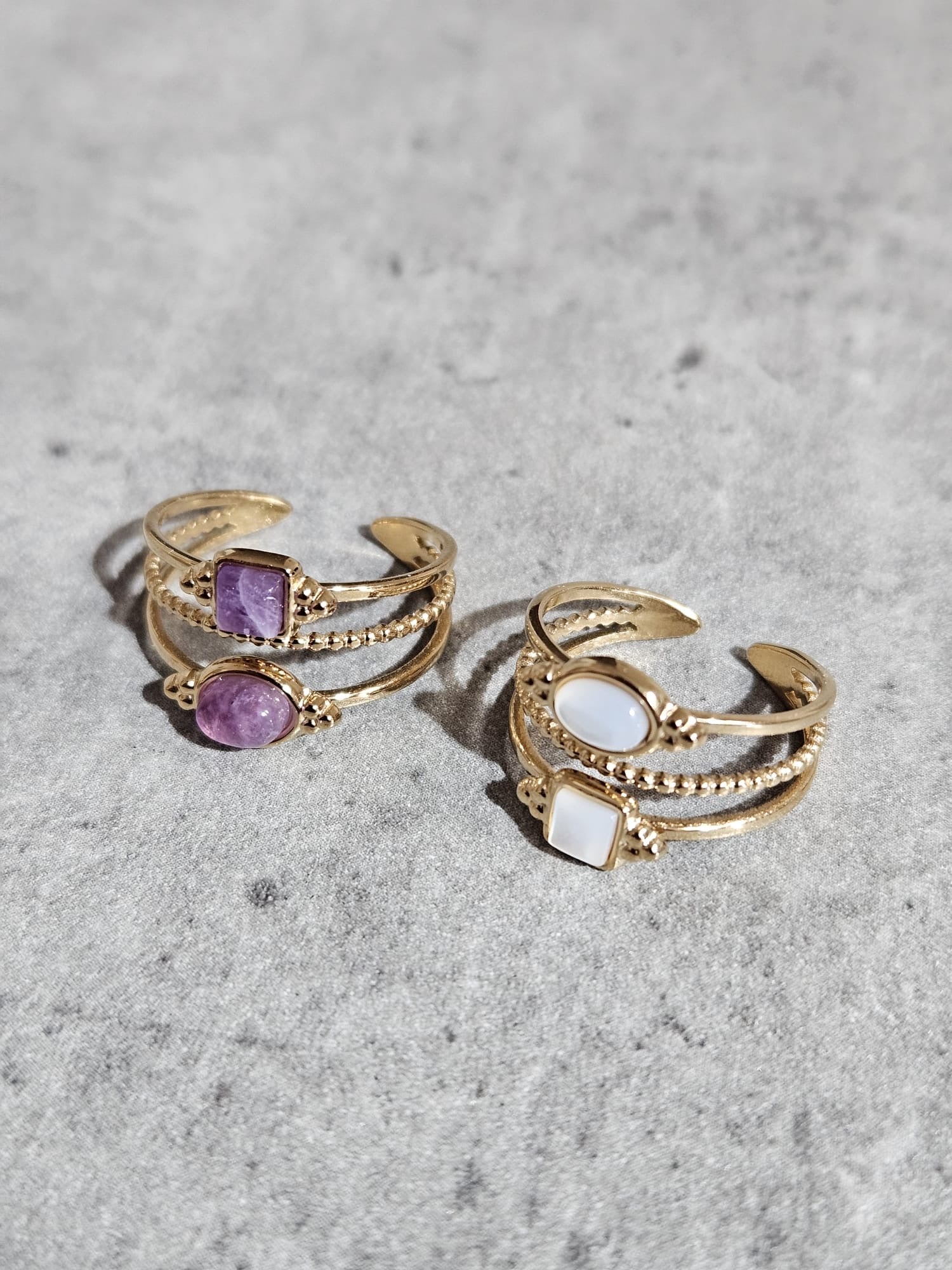Sélection de bijoux en pierres naturelles et acier inoxydable.