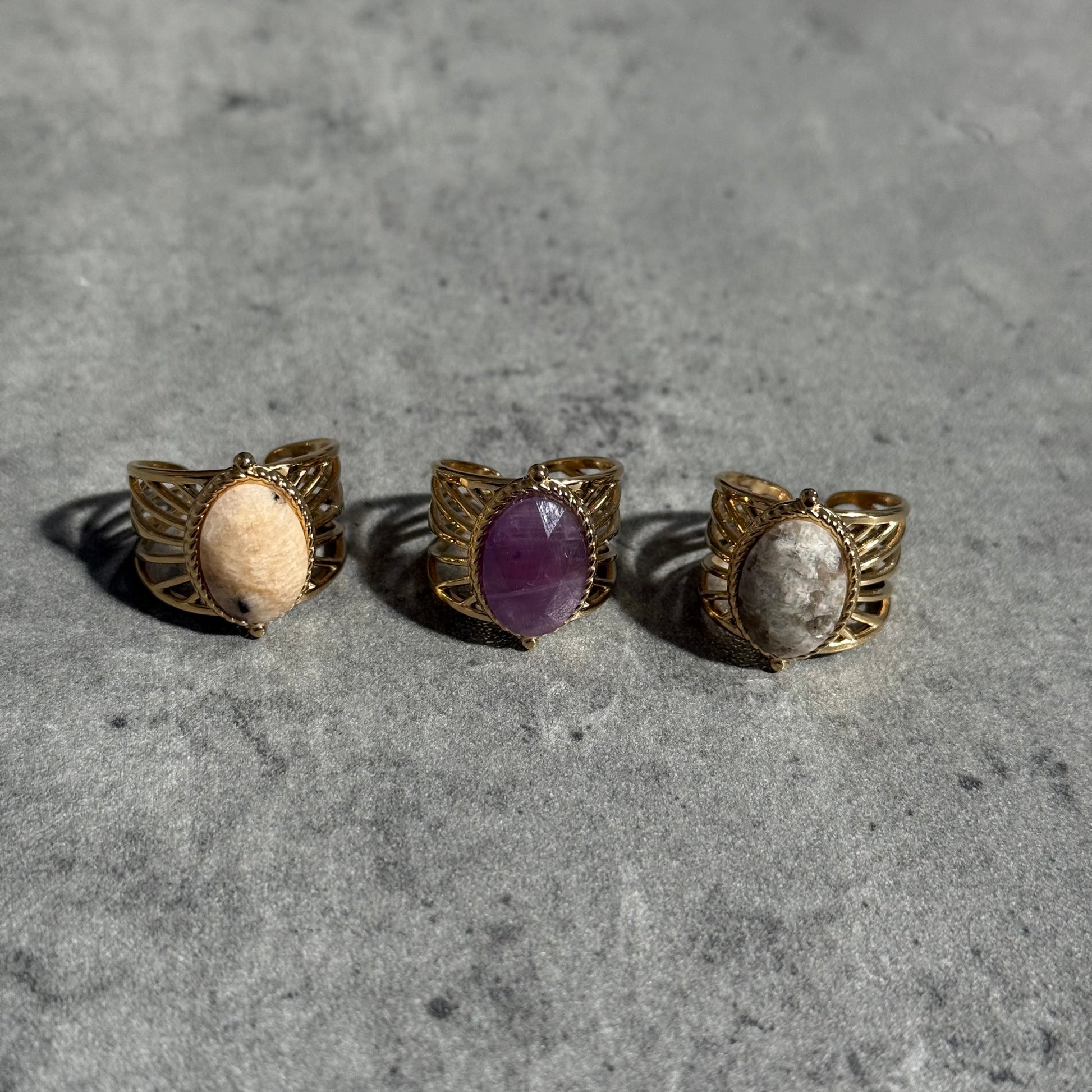 ✨Bague réglable en acier inoxydable et pierres naturelles – Améthyste ou Jaspe paysage✨