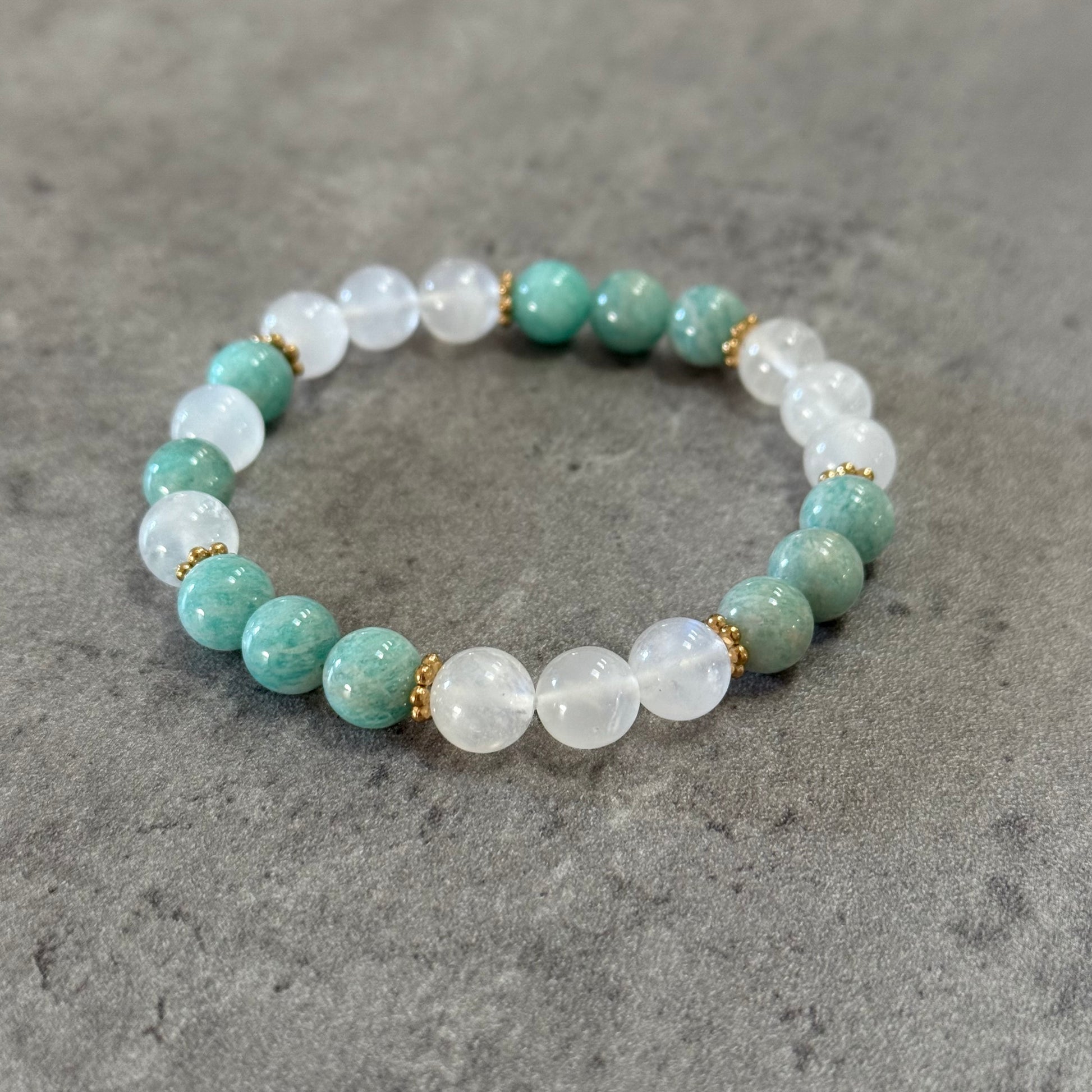 ✨Bracelet en pierres naturelles – Amazonite & Pierre de Lune✨ - fait main