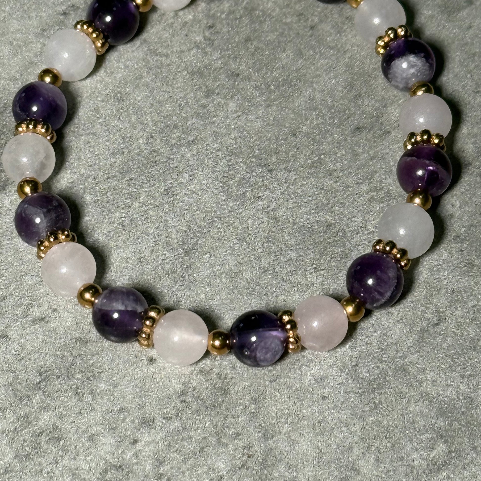 ✨Bracelet en Améthyste et Quartz Rose – Amour & Sérénité – Acier Inoxydable Doré✨ fait main