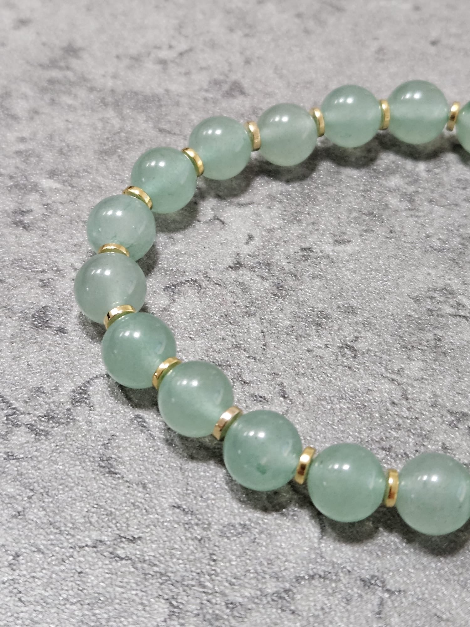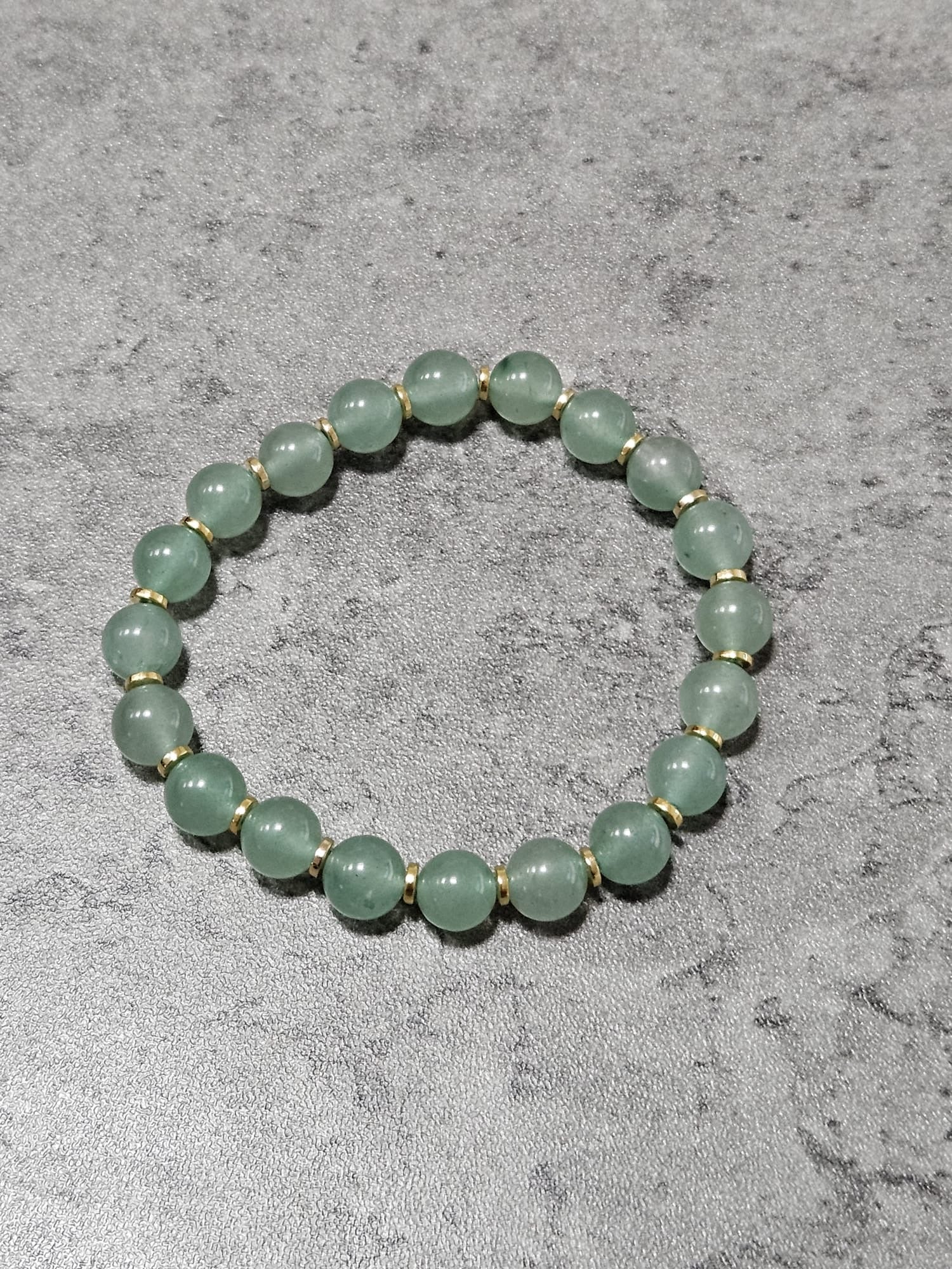 Apportez douceur et équilibre à votre quotidien avec ce bracelet en aventurine naturelle aux perles de 8 mm.