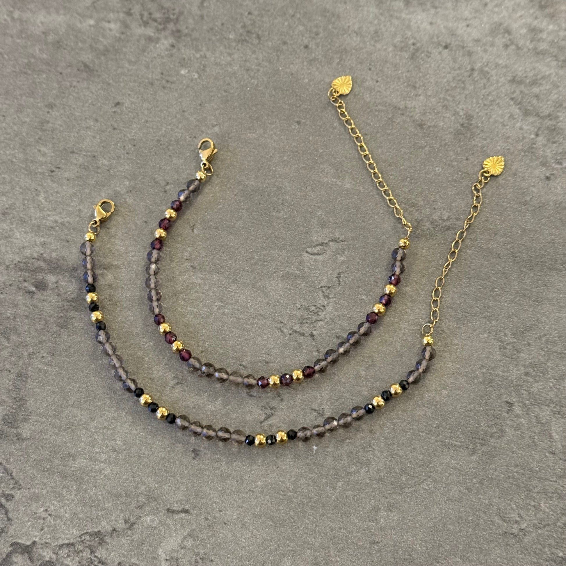 Bracelet Noma - Quartz fumé et Spinelle Noire ou Grenat Rouge