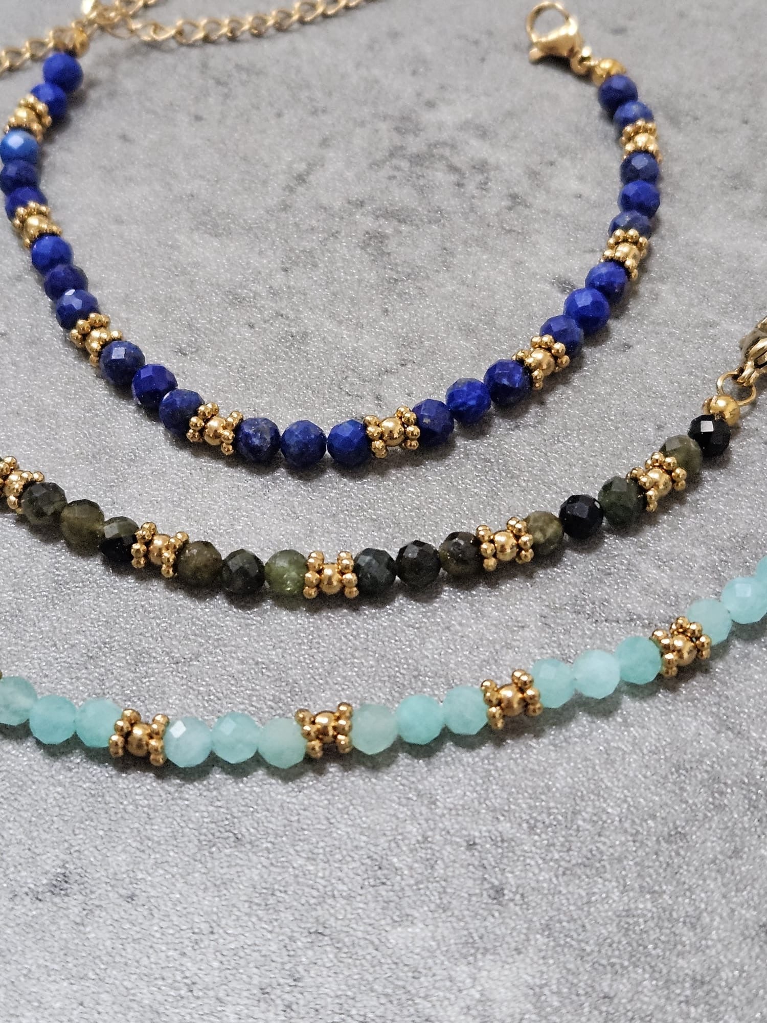 Bracelet Olivia - Tourmaline verte , Lapis Lazuli ou Amazonite