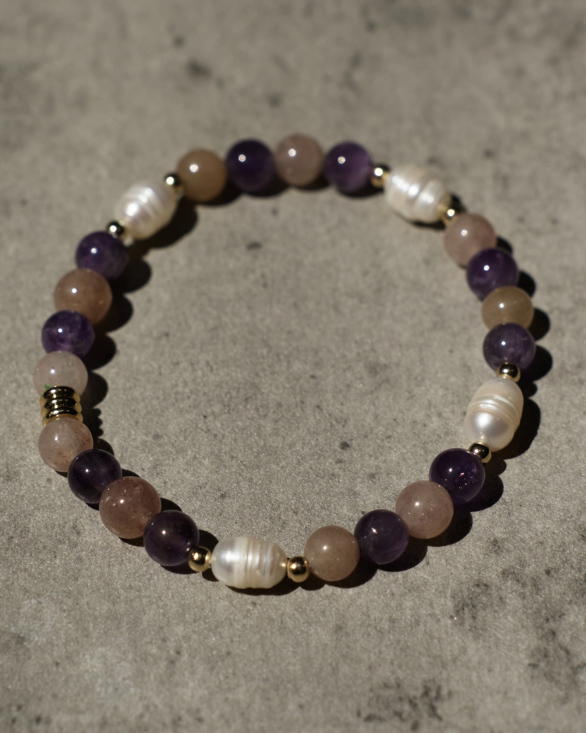 Bracelet Perle - Améthyste et Quartz Fraise