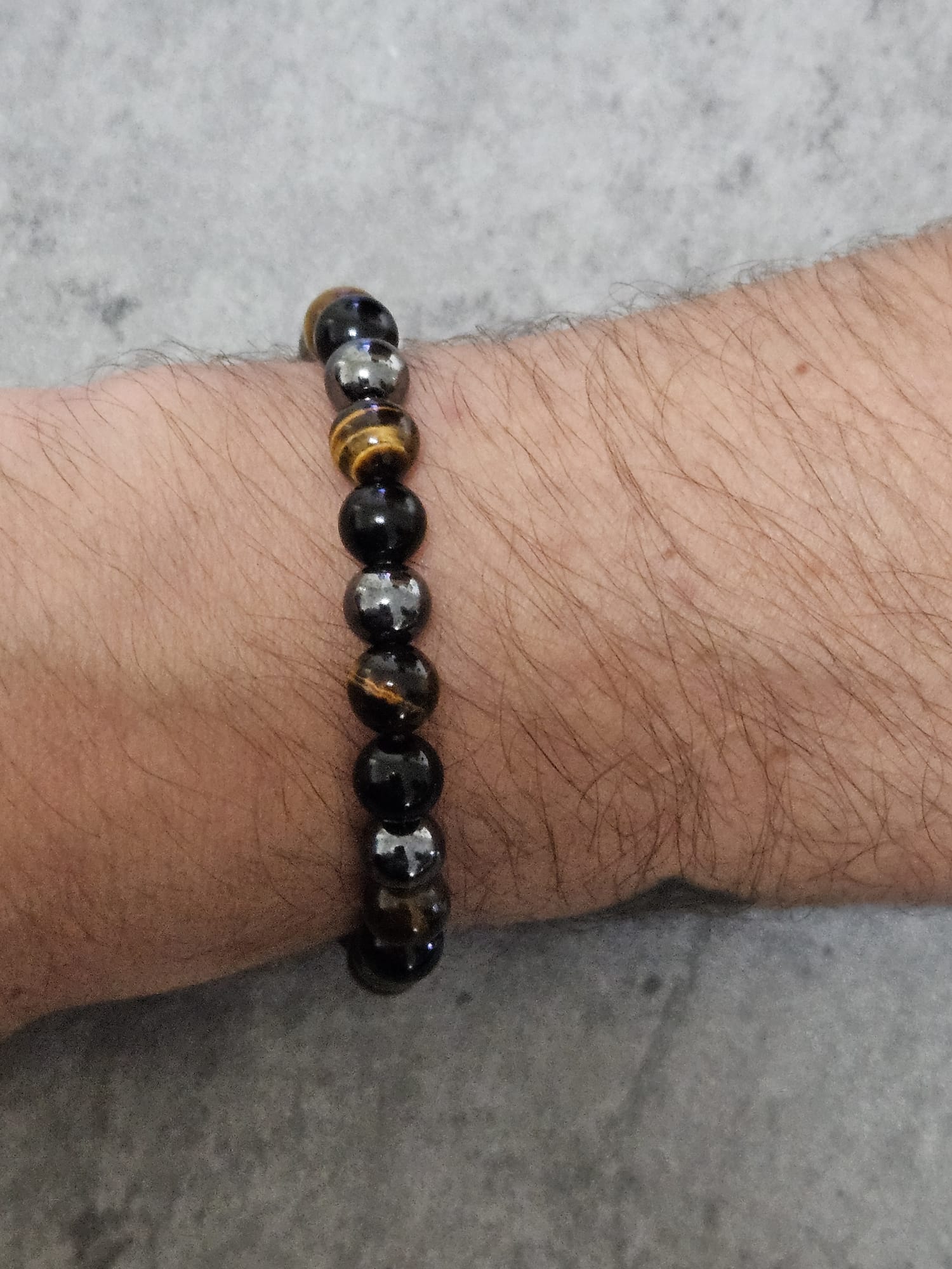 ✨ Bracelet Triple Protection – Œil de Tigre, Hématite & Obsidienne – 8 mm✨- fait main